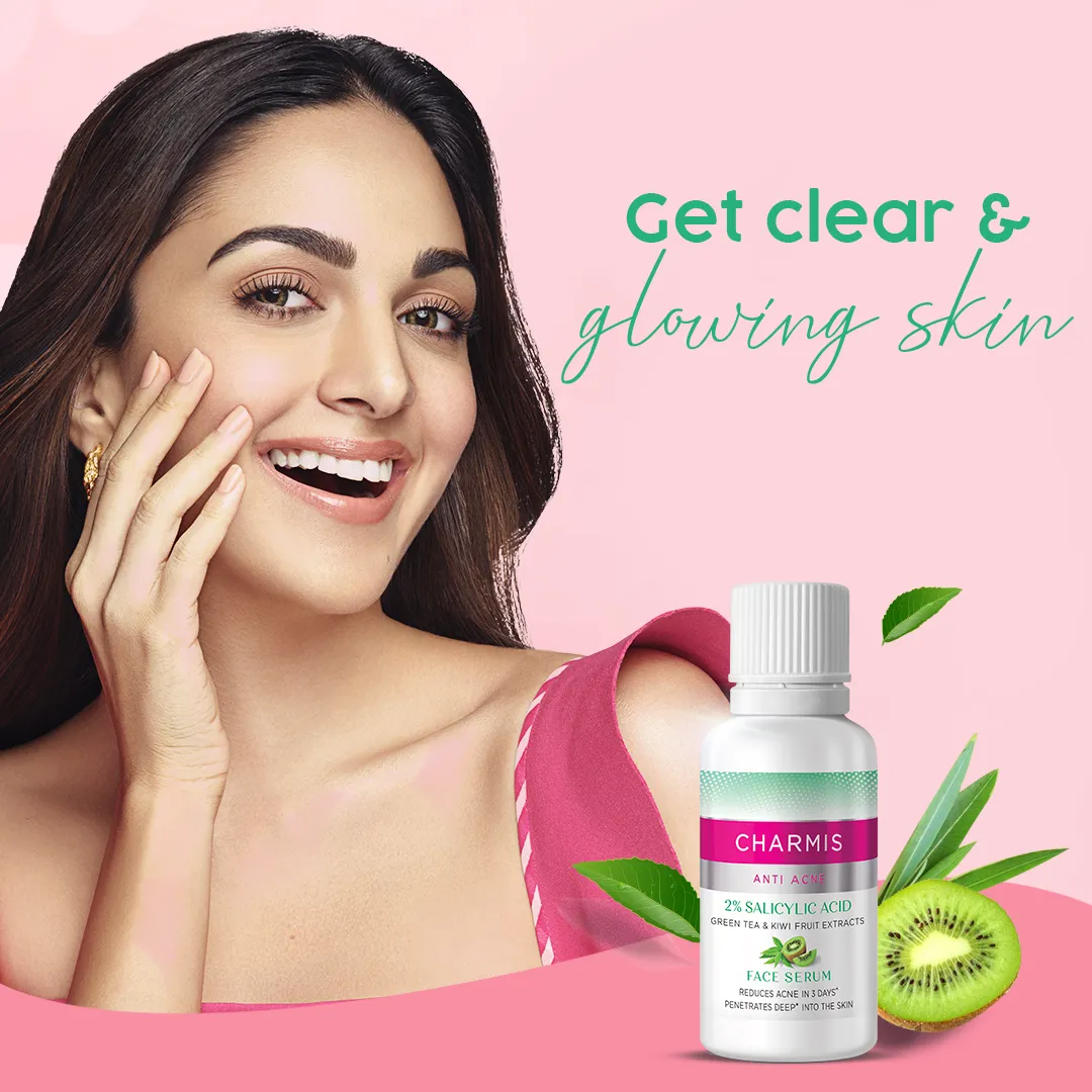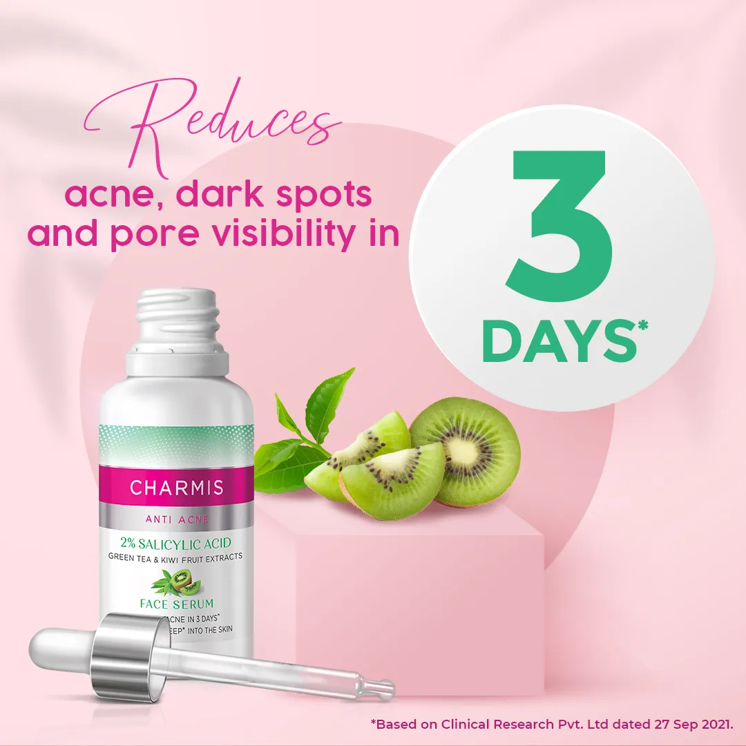 Charmis Anti Acne Face Serum With 2% Salicylic Acid, Green Tea & Kiwi Extracts (30ml)