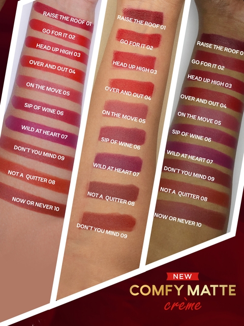 Long LastingWaterproofSmudge ProofNo DrynessSingle stroke application8hrs Long stayMatte creme lipstick that hydrates like a lip balmSuper hydrating hyaluronic acidNourishing coco butter