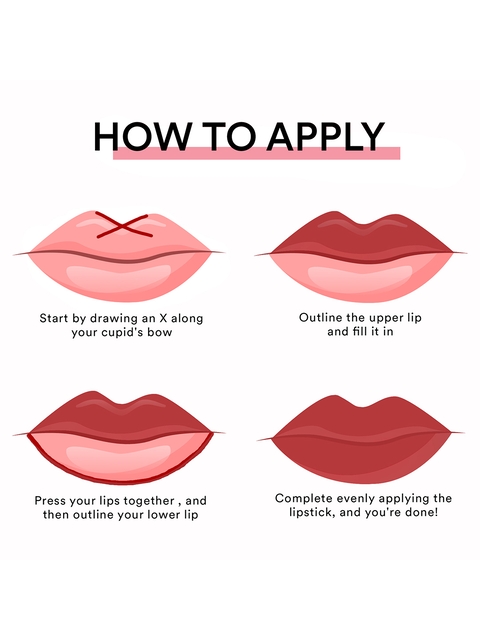 Start by drawing an X along your cupid's bowOutline the upper lip and fill in your upper lipOutline the bottomlip lineComplete applying the lipstick and you're done!