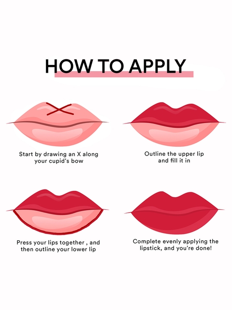 | How-to-Apply | Apply lipstick by starting in the centre of your upper lipWork from the centre to the outer edges, and then follow the contours of your mouthGlide the lipstick across the entire bottom lip |
