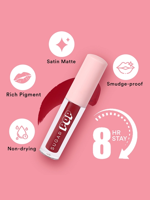 | Benefits | Introducing the SUGAR POP Matte Lip Colours that are super pigmented, long-lasting and non-drying on lips.The smooth, satin-matte formula stays on fresh and vibrant for upto 8 hours and glides on smooth like a dream.Available in 15 cool shades to suit all complexions, these matte lip colours are a must-have!Highly pigmentedNon-dryingLong-lasting upto 8 hoursRich in colourSuper matteComfortable on lips |